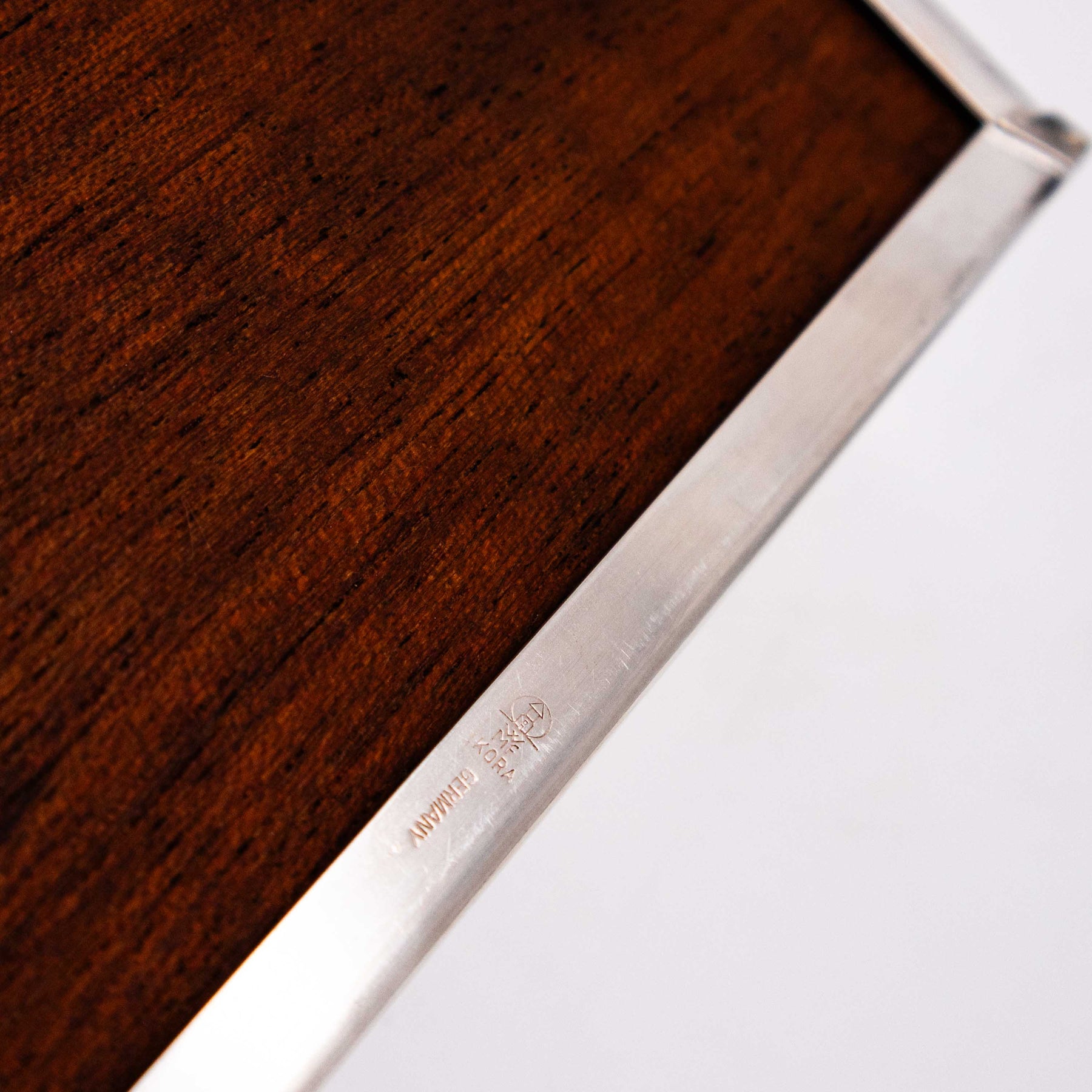 Diese edle Spielkartenschatulle von WMF Ikora vereint Funktionalität mit zeitloser Eleganz. Gefertigt aus versilbertem Messing und mit einem Einsatz aus Holz versehen, besticht sie durch ihr nostalgisches Spielkartenmotiv im Stil der 1950er Jahre. Im Inneren trägt die Schatulle eine persönliche Gravur: „Zur Erinnerung a.d. Dienstzeit b. Jäger-Bataillon 18“ – ein detailreiches Zeugnis vergangener Zeiten und eine charmante Geschenkidee mit Geschichte.