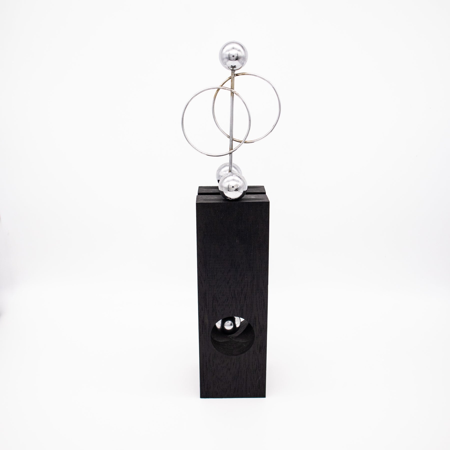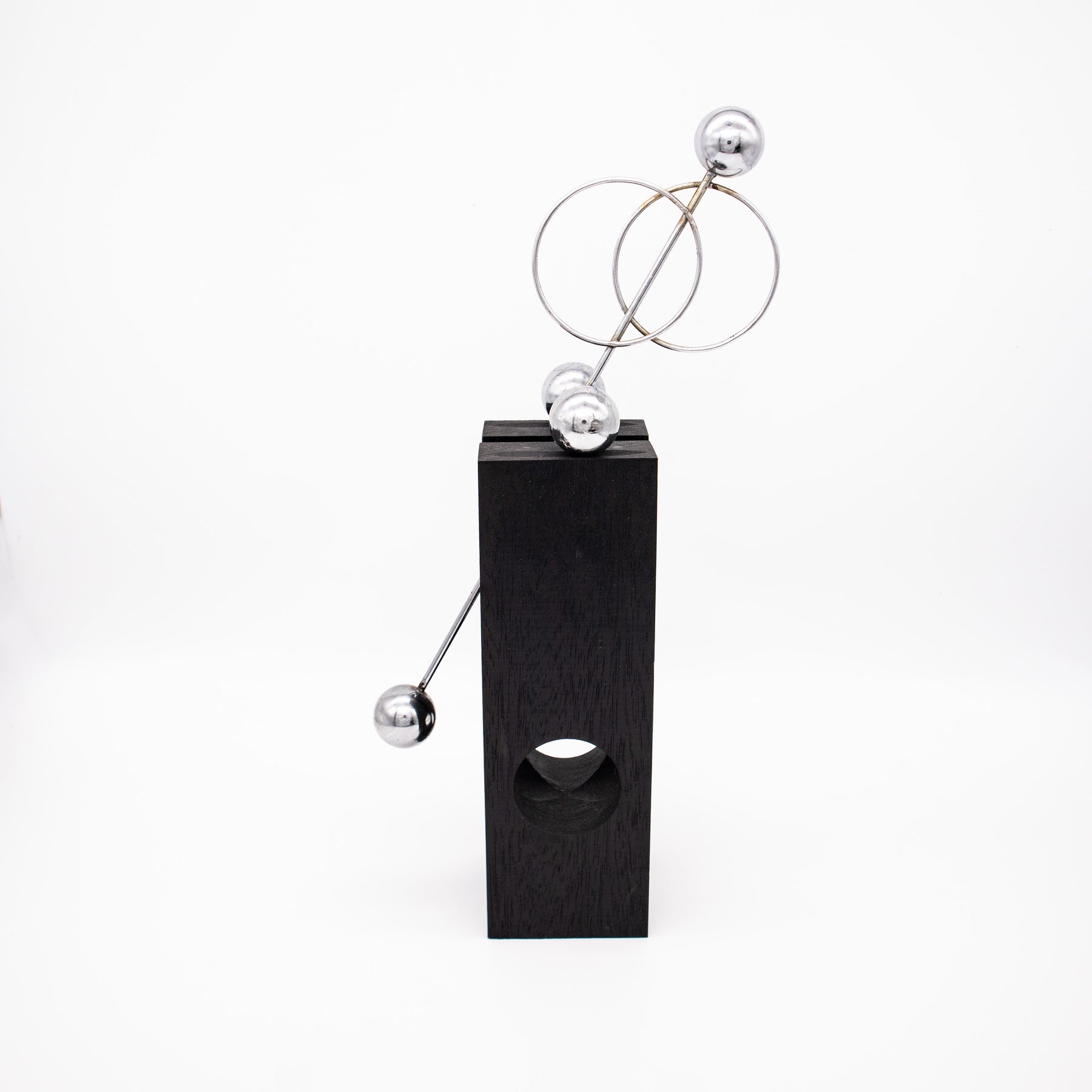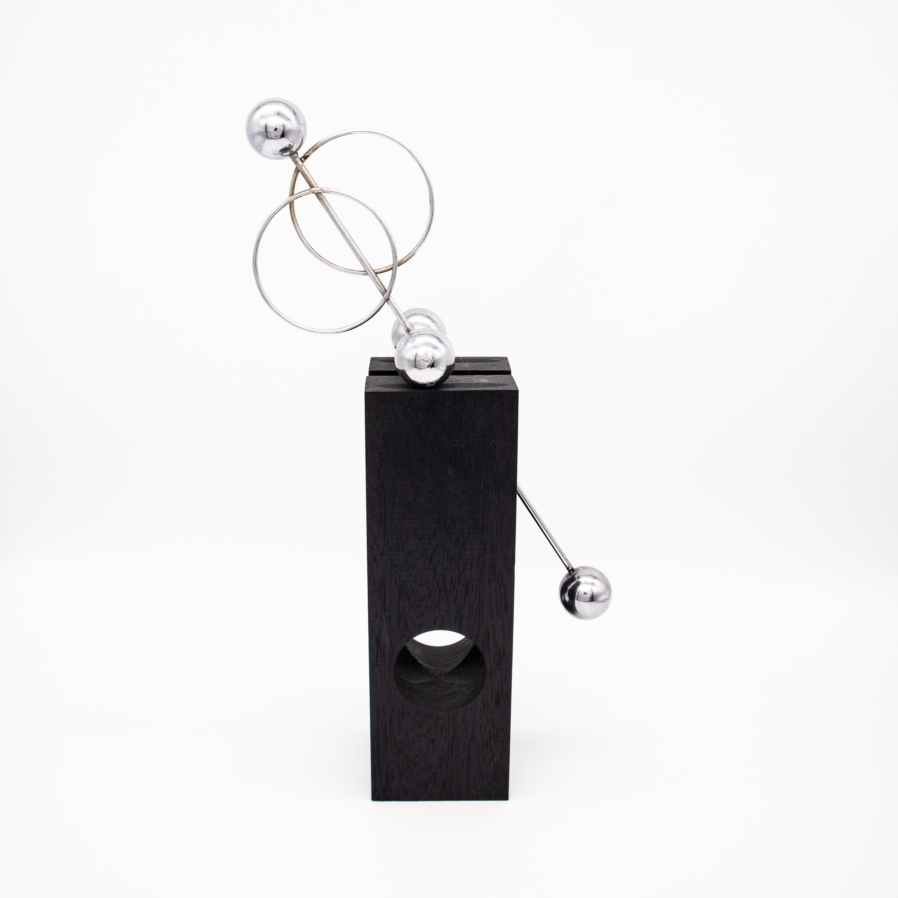 Dieses kinetische Pendel aus den 1960er Jahren vereint einen Holzsockel mit einem metallischen Pendel und steht exemplarisch für das puristische dänische Design jener Zeit. Die harmonische Verbindung von natürlichen Materialien und mechanischer Bewegung macht es zu einem faszinierenden Objekt, das Technik und Ästhetik verbindet. Ideal für Sammler und Liebhaber klassischer Designobjekte mit historischer Bedeutung.